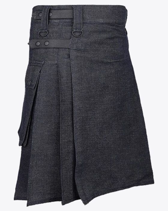 Black Denim Kilt for Men